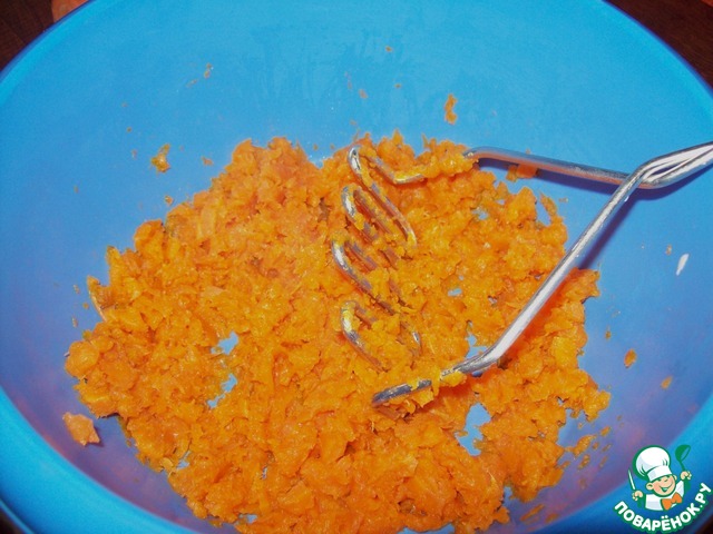 Измельчить морковь в пюре. Лучше все-таки воспользоваться блендером.