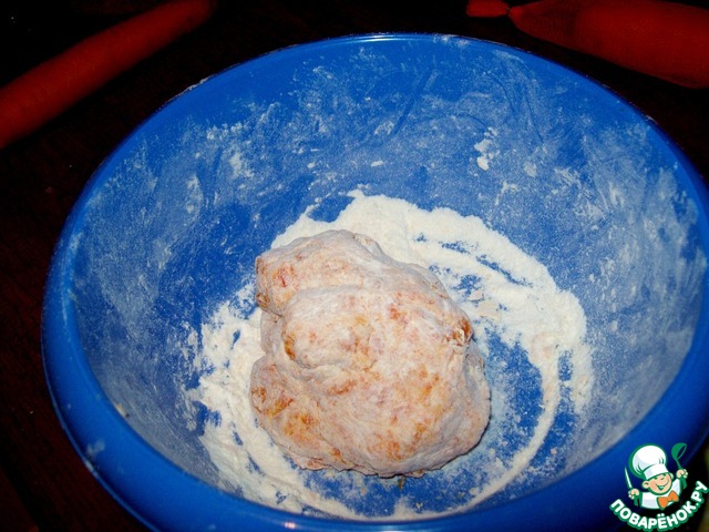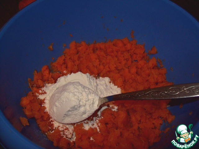 К морковному пюре добавляем 3 - 5 столовых ложки муки.