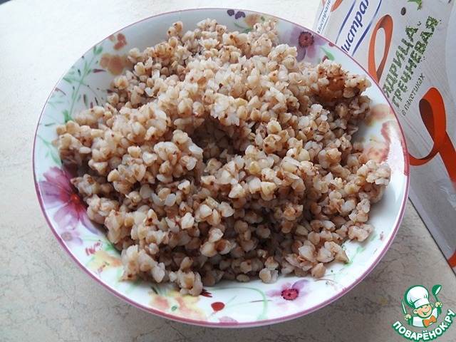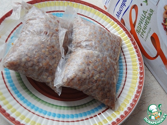 Через 20 минут гречка готова. Достаньте пакетики, вскройте их.