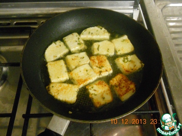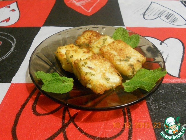 Обжаренный сыр подать, декорировав мятой. Приятного аппетита!