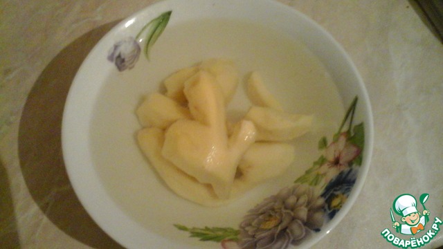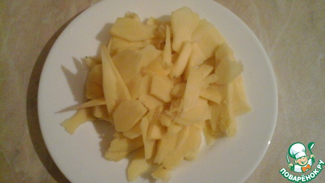 Нарезаем ломтиками. Лучше это делать овощечисткой.