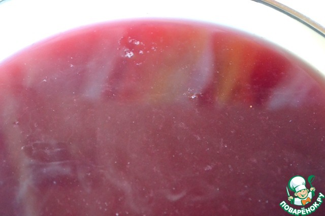 Свежий сок (микс) убираем в сторону. Жмых заливаем водой, кладем сахар и доводим до кипения, процеживаем через сито