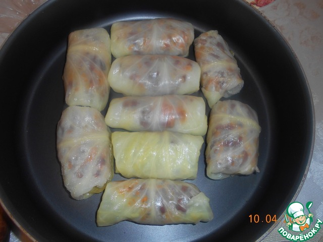 Из каждого листа капусты сделайте голубцы. положите на противень.