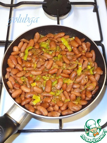 Из кастрюли со сваренной фасолью слейте воду. Выложите фасоль к луку-порею. Долейте масло, добавьте томатную пасту, сбрызните лимонным соком, посолите, поперчите по вкусу и хорошо перемешайте.