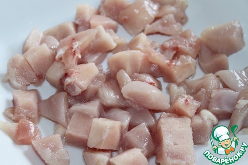 Курицу нарезать небольшими кусочками (если курицу не добавляете, этот пункт пропустить).