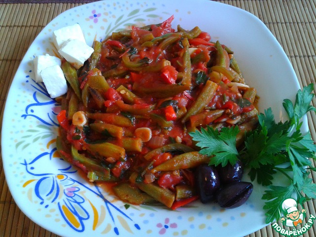 Подаем в горячем виде, сервируем оливками и сыром " Фета".