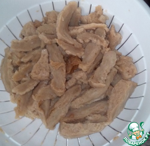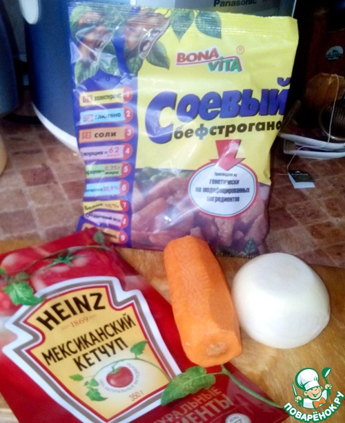 P.S. ела такой гуляш впервые, вкус сои ощущается, но не сильно, по текстуре такой гуляш напоминает грибы.