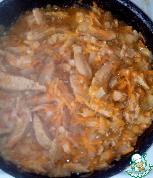 Добавляем водичку и ставим тушиться минут на 15-20. Посолить, поперчить
