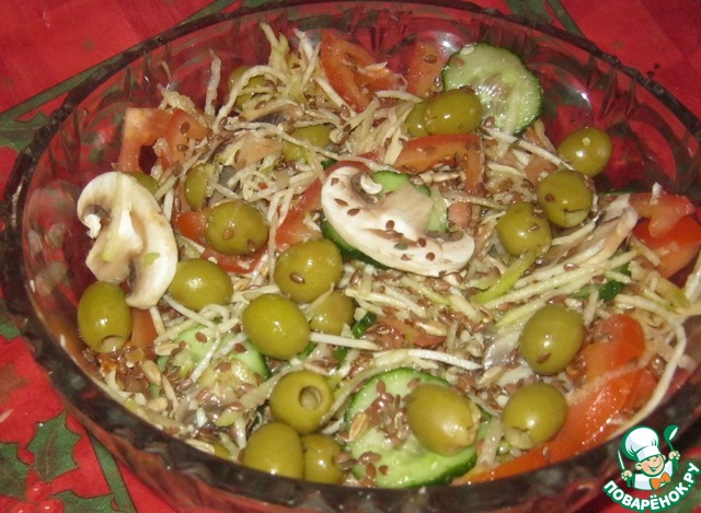 Добавляем оливки и угощаемся (я решила оливки не резать-вышло тоже не плохо)