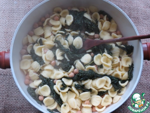 когда капуста будет почти готова. добавить орекьетти и довести до готовности.