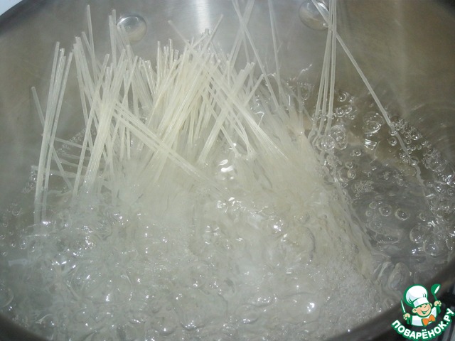 Отварить рисовую лапшу на пару минут меньше, чем указано на упаковке.