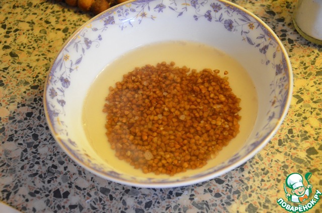 Гречку залить горячей водой и оставить на 20 минут
