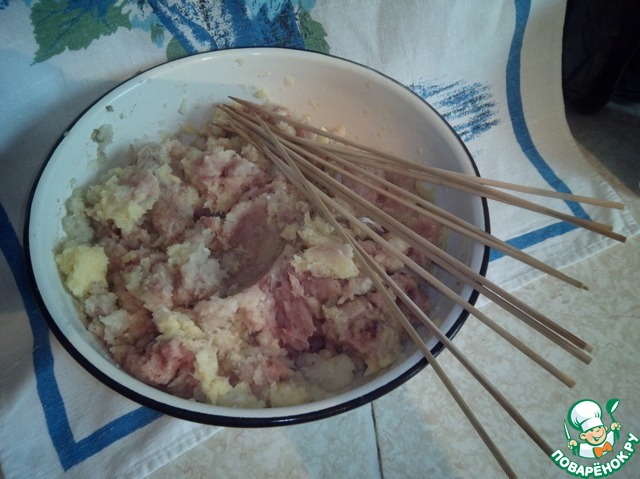 Все тщательно перемешать и лепим люля с помощью палочки.