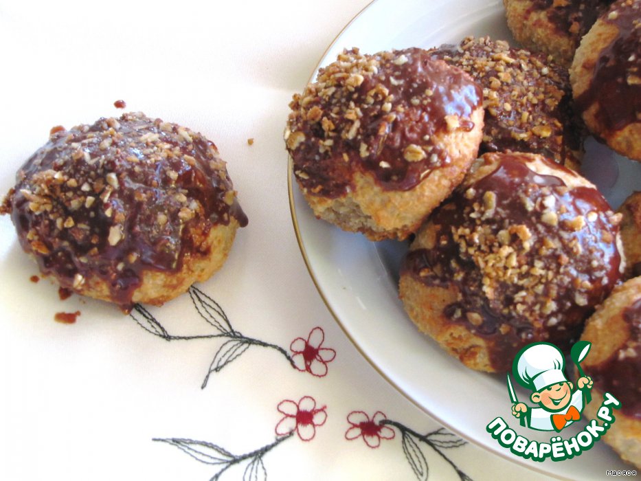 Теперь из теста лепим комочки. Лучше всего влажными руками, т.к. тесто довольно липкое. Выкладываем на противень с пергаментной бумагой. Отправляем в разогретую духовку до 180°С на 25-30 минут, пока не зарумянятся.