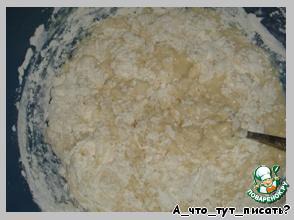 Замесить тесто. Специальные приспособления сделают это за 7 минут, если месить своими руками >:o - это должно занять не менее 15 минут. Только так вы сможете достичь нежного вкуса теста :-X. Консистенция - как обычное тесто для булочек. Готовое тесто оставить еще на 20 минут.