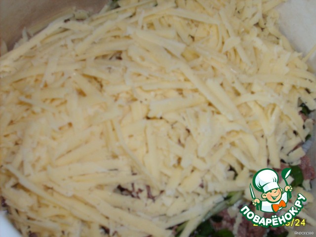 Трём сыр на тёрочке, добавляем в салат.