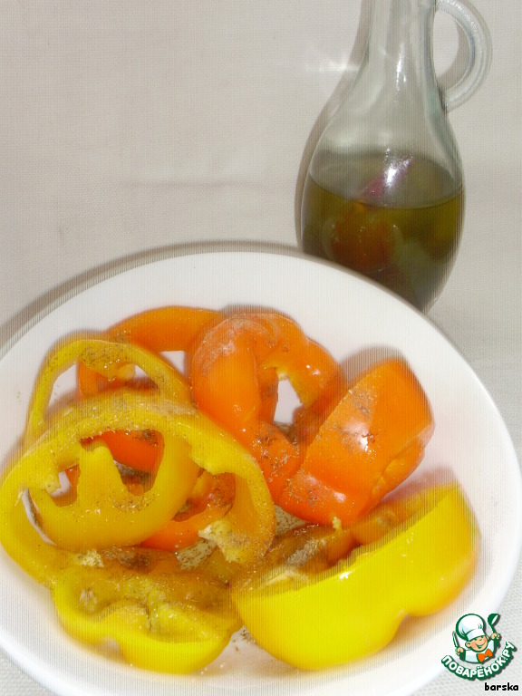 Перец помыть, очистить от сердцевины, нарезать толстыми кольцами. Масло (у меня - оливковое, настоянное на травах) смешать с прованскими травами, добавить соль и полить перец. Оставить мариноваться на несколько часов.