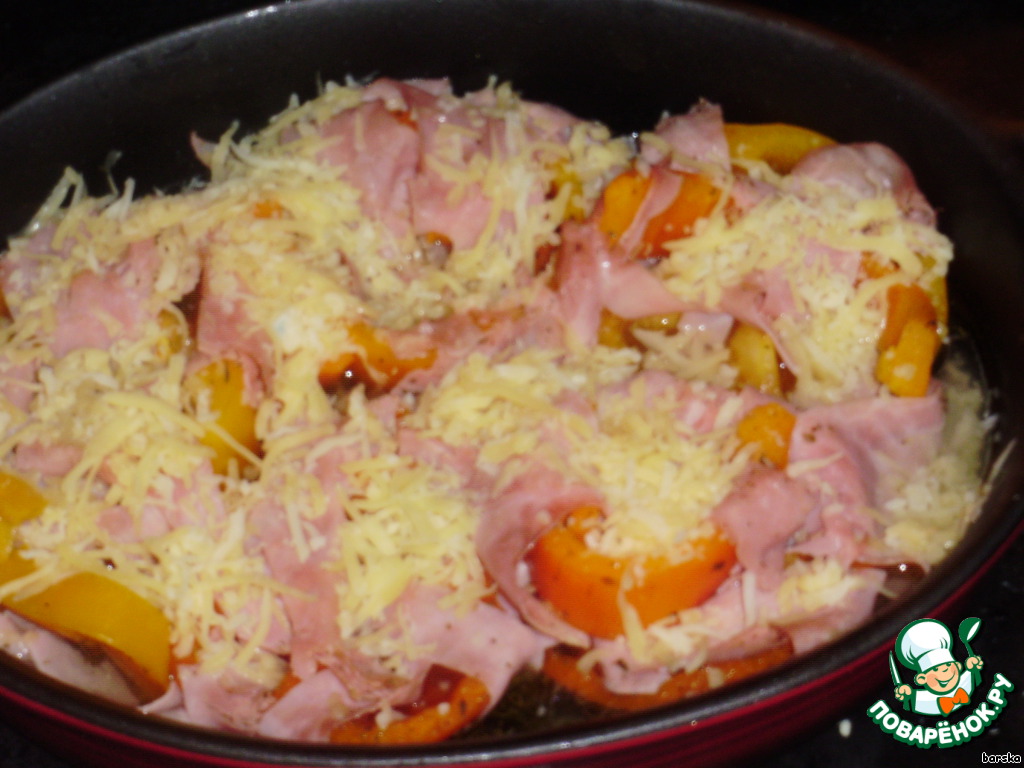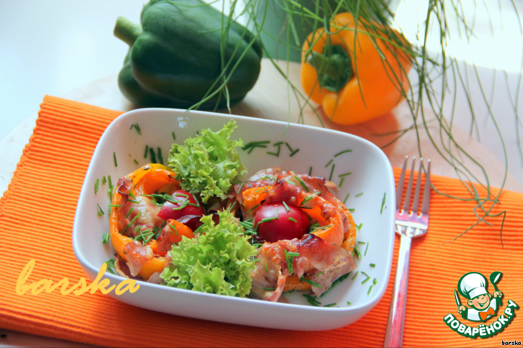 Посыпать тёртым сыром и запекать при 180*С 15-30 минут. Время запекания будет зависеть от Ваших вкусовых предпочтений (более мягкий перец или более хрустящий).
