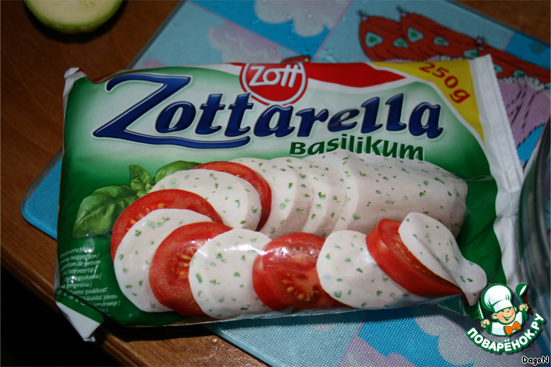 Моцареллу нарезать и положить поверх помидорок. Выпекать около 30 минут при 200 градусах.