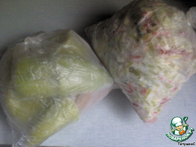 Даём нашему перчику просушиться немного от лишней влаги (чтобы не держать эту влагу в морозилке), приблизительно 1-2 часа. Укладываем в полиэтиленовые пакеты, прочно завязываем (можно в двойной пакет) и укладываем в морозилку. У кого есть-включаем режим быстрой заморозки на 1-2 часа. Всё! Лёгкая готовка зимой обеспечена! Можно укладывать в пластиковые контейнеры, но мне кажется пакеты более лучше укладываются в набитую морозилку.