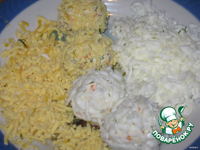 Делаем шарики величиной с грецкий орех, можно подавать уже и в таком виде, а можно...