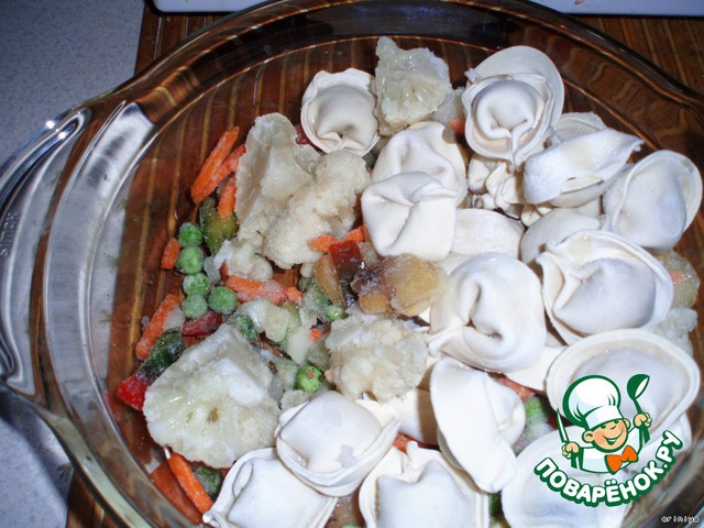 Овощная запеканка с пельменями