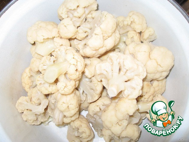 Капусту разобрать на соцветья, отварить до готовности в подсоленой воде, охладить, порезать меленько или перекрутить на мясорубке.