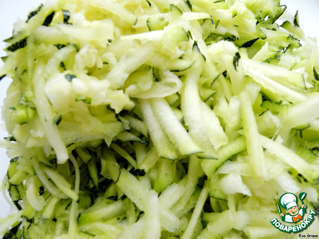 Теперь запеканочка. Кабачок натрем на терке, присолим, оставим на 10 минут.
