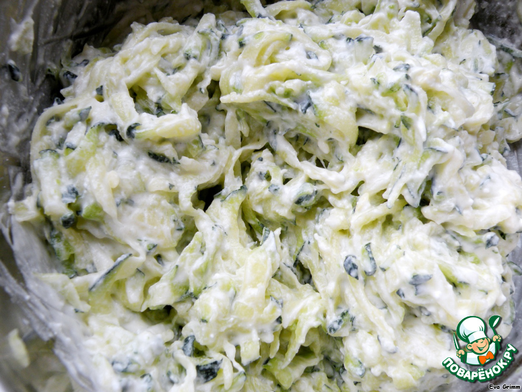 Тем временем взбить желтки с солью и перцем, добавить творог и взбить блендером до однородной массы. Кабачок отжать и смешать с желтками.