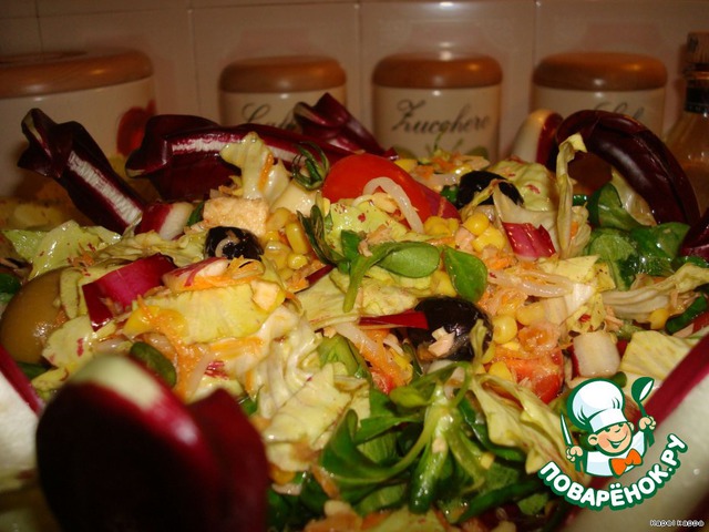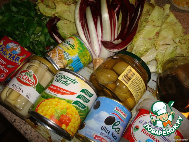 | Этот салат здесь в Италии очень любят и, так как он богат ингредиентами, то вполне может заменить комплексный обед или ужин, а также может стать прекрасным дополнением праздничного стола.. Я иногда готовлю себе это кушанье (в небольшом количестве) после занятий в спортзале, так как оно содержит витамины, клетчатку, насыщенные жиры и кальций... а иногда мы просто готовим его себе на ужин.. легко и вкусно! Это блюдо я дарю моей подруге из Греции, Яночке (seemelody) Яник, тебе обязательно должно понравиться)) |