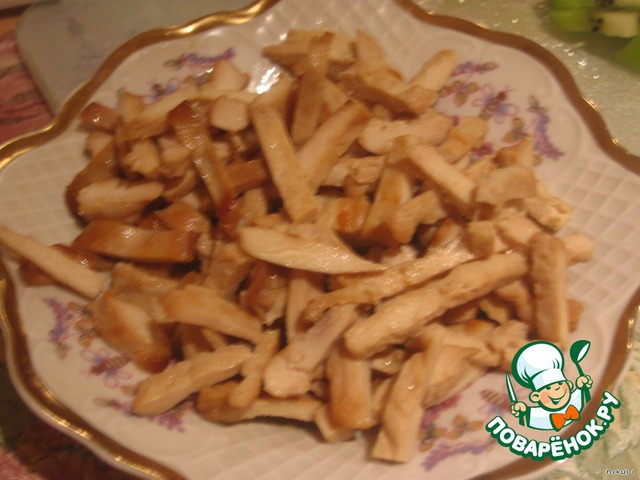 | Легкий, вкусный, сочный салатик. Пикантная курочка, овощи и фрукты - получается отличный микс. Угощайтесь. |