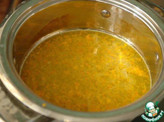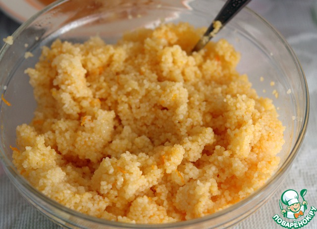 Получившимся апельсиновым сиропом залить кус-кус, накрыть крышкой и дать настояться в течение 30 мин., помешивая изредка.