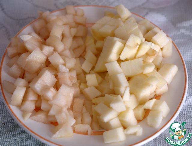 Яблоко и грушу нарезать также кубиками, очищать не обязательно, но я для себя очистила.