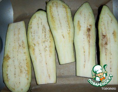 Баклажан тщательно моем и режем в длину на 5 частей.