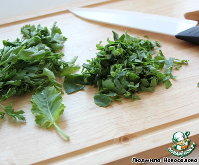 Петрушку и листья кольраби мелко нарезать.