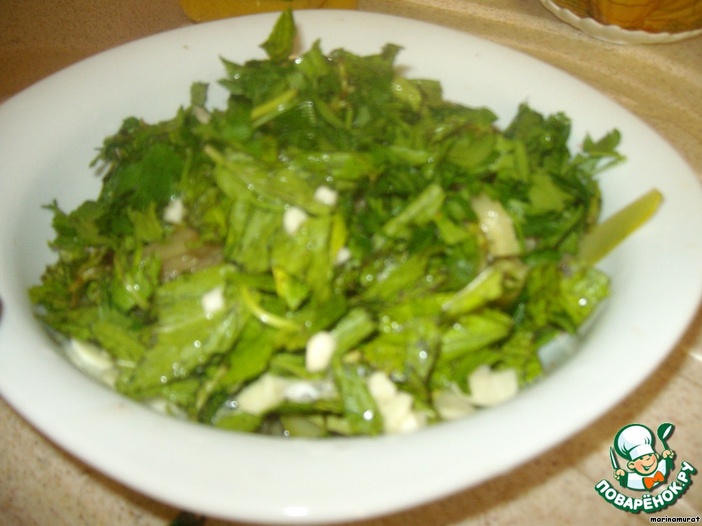 Добавляем зелень и снова перемешиваем.