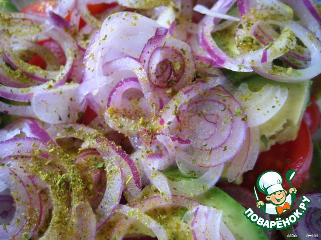 добавить нарезанный тонкими кольцами лук и сбрызнуть лимонным соком.