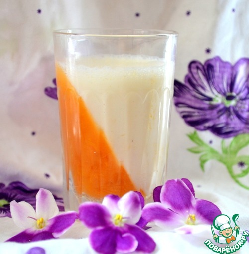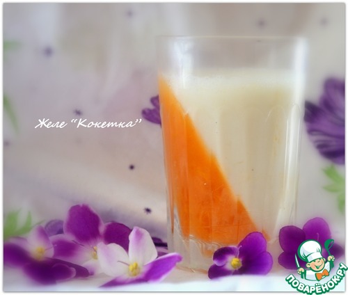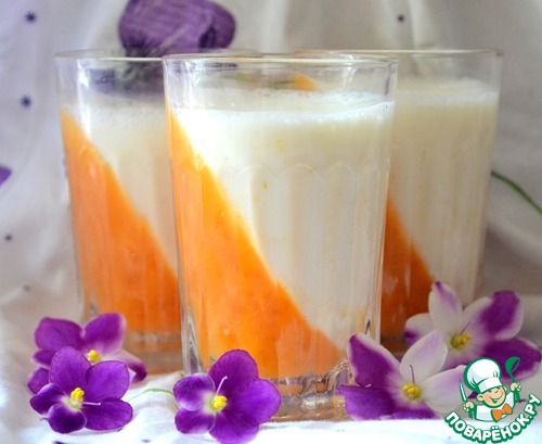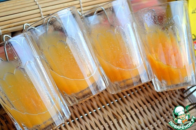 Аккуратно доливаем смесь в стаканы с уже застывшим абрикосовым желе.