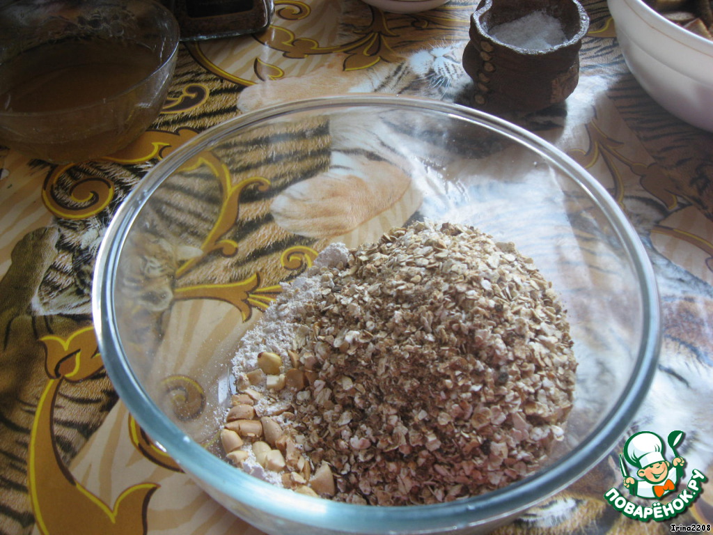 Полстакана овсянки перемолоть на кофемолке, остальную обжарить до золотистого цвета на сковороде (без масла), добавить дробленный арахис (по желанию)