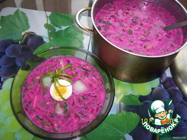 | Долго думала, какое название дать этому блюду, прежде чем поместить на сайте. Этот летний супчик - нечто среднее между окрошкой, обычным свекольником и литовским холодным борщом. Другими словами - "от всего понемножку". Один из моих любимых вариантов холодных супов с ярко выраженным кисло-сладким вкусом... |