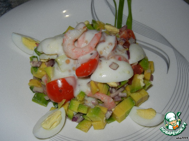 | Быстрый в приготовлении, легкий и вкусный салатик! Для всех, кто любит креветки и авокадо |