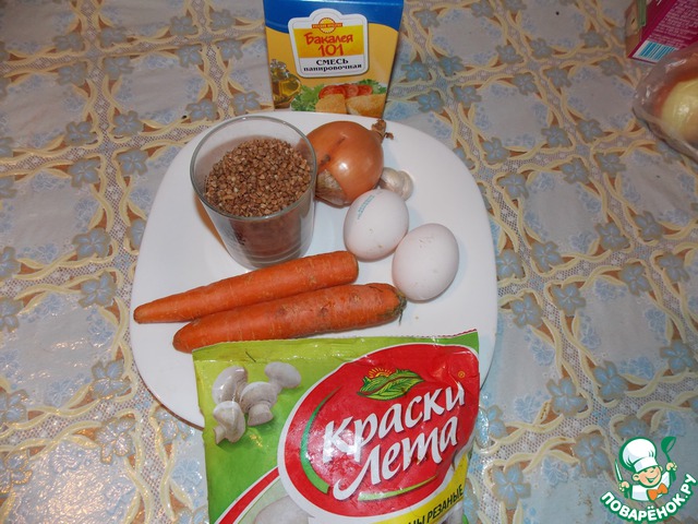 Гречку отварить.. Грибы обжарить с луком, морковь отварить..
