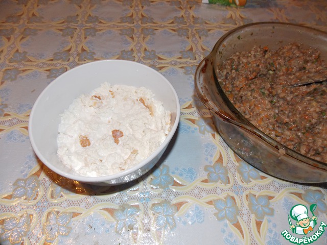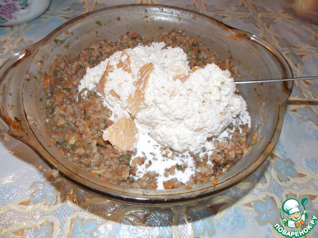 Добавить хлеб к нашему фаршу из гречи и овощей.