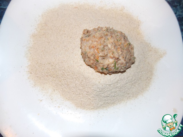 Все еще раз перемешиваем, формируем котлетки, обваливаем их в панировке и обжариваем на сковороде..