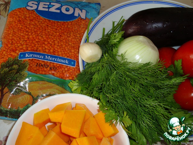 | Источник рецепта: Интернет Это блюдо сытное и в то же время очень полезное. Блюда из чечевицы и тыквы – это нежный изысканный вкус и польза нашему организму. Пробуйте , и может быть Вам понравится. |