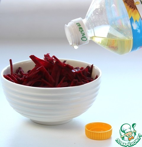 Свёклу вымыть, очистить, нарезать соломкой.