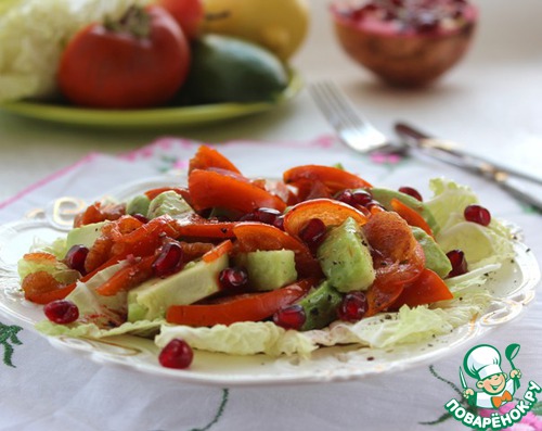| Благородное сочетание бархатистого вкуса авокадо со сладковатой хурмой и сочными зернами граната, оставляют настолько сказочное послевкусие, что хочется назвать этот салат аристократический. Надеюсь, что тот, кто хочет и любит творить на кухне, не оставит этот салат без внимания, а мне хочется выразить слова благодарности Мухаббат, за роскошный рецепт! |
