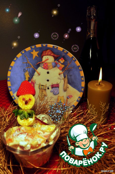 Ставим его в наш фруктовый салат, и сказка начинается...