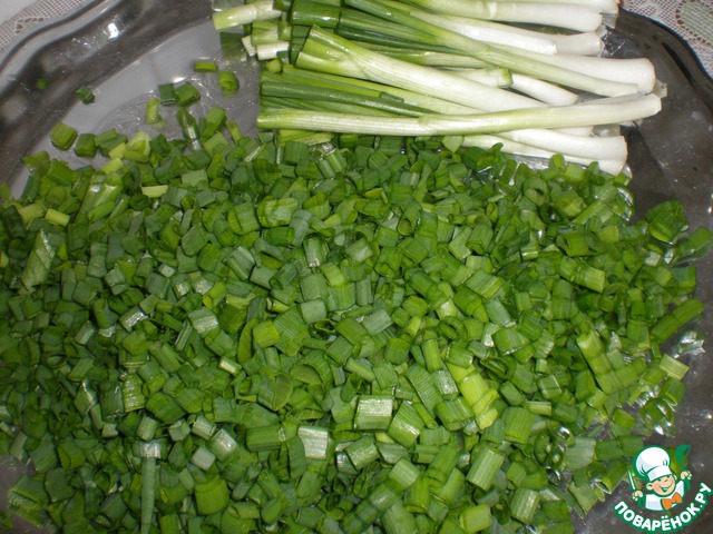 К готовой, слегка остывшей крапиве, добавим лук. Начинка готова.