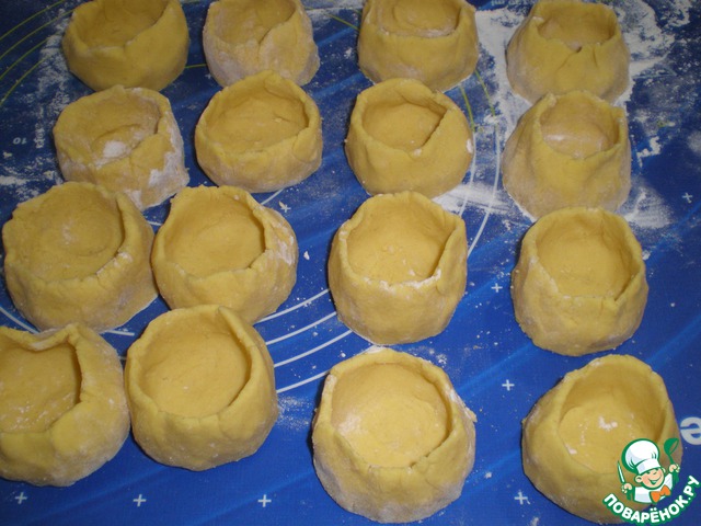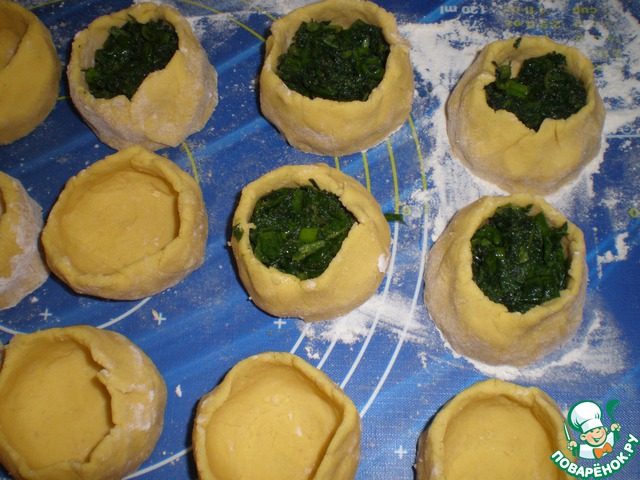 Заполняем кувшинки начинкой и закрываем. Чем тоньше тесто и больше начинки, тем вкусней колобок.